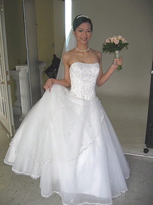 Well you gotta remember that the dress isn't actually ours. We were just doing the typical Taiwan-style studio pictures so that dress is just for the pictures. So it doesn't count for the American tradition of not seeing the bride in her wedding dress before the wedding day. =)