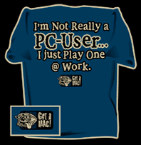 Don't get me wrong, I'm not here to bash PCs although it might seem like it every now and then. ;-p Both systems have their strengths and weaknesses but my personality forces me to favor Macs. 'sides, I'd like to think that I've worked with both systems enough to make a relatively unbiased opinion on the quality of each. But I guess 4 years at a pro-Mac university was enough to alter my computer preferences for good. Maybe if I actually cared much about computer games I'd be a full-blown PC buff. But I'm not so that's the way the ball rolls. In conclusion, this shirt that I found at the MacSurfShop, pretty much sums up my computer inclination. Cheers. =)
