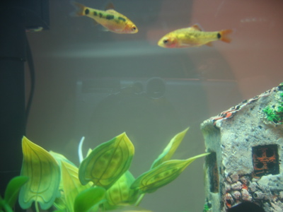 Taking pics of these guys are still a bit rough as I haven't quite figured out the best way to do it with my Powershot S400 yet. Seems like my best bet is to not use zoom, set it to macro mode and get as close to the glass as possible. But the tetras are hardest to capture since they swim in bursts rather than at a leisurely pace. Ah well, practice practice.