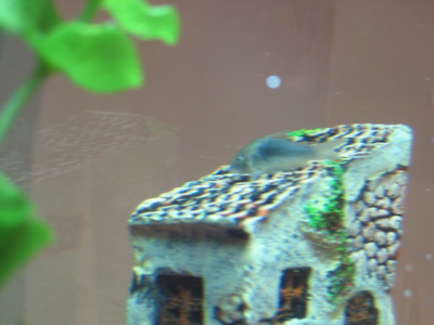 This is the larger catfish who seems to like to rest on top of the house roof every now and then. Usually after it goes up to the top for air.