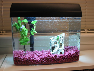 We had been talking about getting fish for quite awhile now but never really got around to it till this weekend. Dropped by NJ Pets in East Hanover during our routine grocery run and picked up a quick and easy Eclipse System 3 which is an acrylic 3-gallon tank. Quite easy to set up although now that I think about it, is probably a bit too small for the number of fish that Erin wants. Ah well, we can always upgrade once we prove that we're not Death personified when it comes to raising fish.