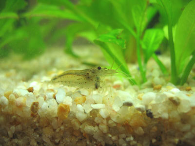 ghost shrimp as well) doing what it does best. Eat. These shrimp are pretty proactive when feeding time comes around. No problems facing off with the fish for food. But they get along fine with everyone else in the tank. Fun to watch as their arms are constantly in motion, shoveling stuff into their mouth.