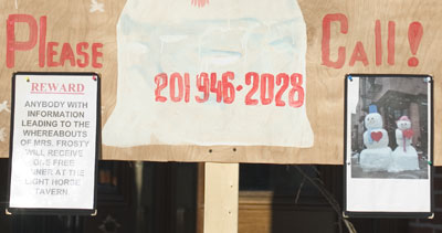 Pretty funny. The sign says you can get a free dinner if you know what happened to Mrs. Frosty.