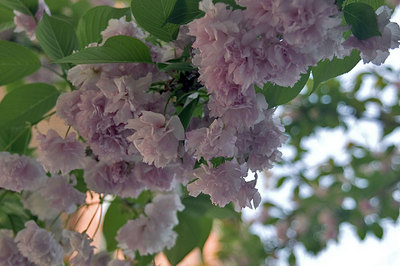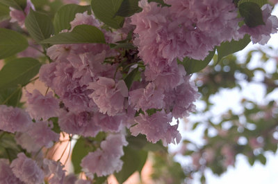 Some pink blossom trees that they've planted a ton of in the neighborhood. Quite pretty when in full bloom. This following pic is the actual pic taken by the lens.