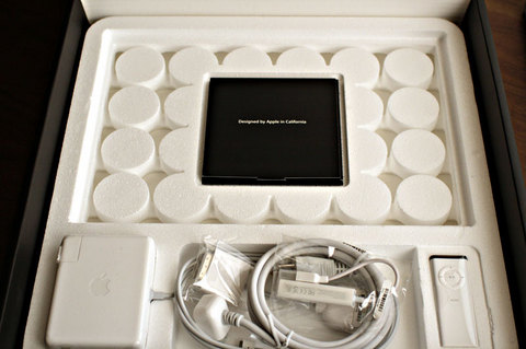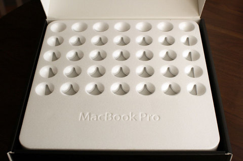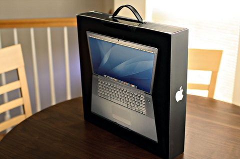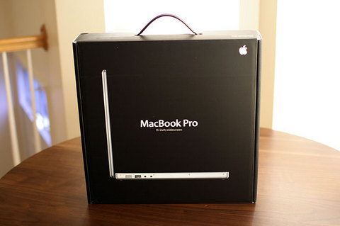 The box is current standard Apple fare. Looked exactly like the box that my black MacBook had come in except the box was black (instead of white) and had a picture of the MBP on it. Inside was pretty much exactly the same.