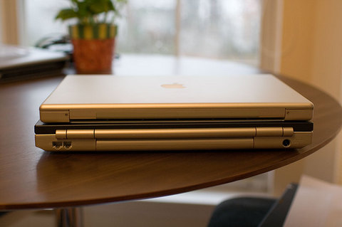 As is customary, I figured I'd take some comparison shots between the Sony N and my MacBook Pro. Stylistically, the N is a huuuuuge letdown, especially since it's a Sony, who are usually regarded (at least by me) as the Apple of the PC laptop world (style-wise that is). The design of the N is so basic and uninspiring it's almost downright criminal. And what is up with the color brown that's popping up in electronics now here and there? One of the N models also comes with a brown lid and there's a brown Zune as well. Guys, I don't care what excuses you make, brown does not a good gadget color make. EVER. Unless your case is made of wood, I don't wanna see it.