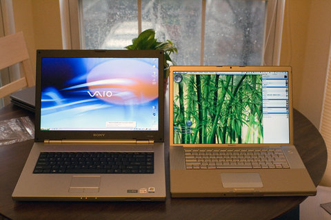 For the price and specs that my mom had in mind, I decided on the Sony N series (VGN-N150P/B to be exact) which Gizmodo had done a brief writeup on, saying that it was Sony's stylistic ripoff of the MacBook. Maybe if you were half-blind and standing across the room from both units.
