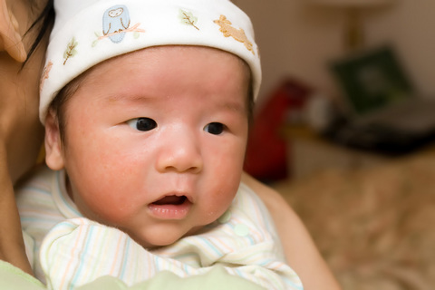He also shows an interesting fascination with the large glamour wedding photo of Erin and I that we have framed. He'll just stare at it intensely every single time we point him in its direction. He can be whining or crying but when we move his line of sight at that picture, he'll immediately stop whatever he's doing and just stare. I think it's cause it's pretty much entirely black and white (with Erin in a white wedding dress and me in a black tux) and newborns supposedly find black and white very interesting things to look at.