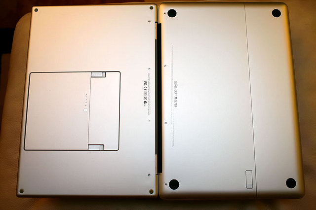 Here you can see the much cleaner bottom on the new MBP now that they've covered the battery.