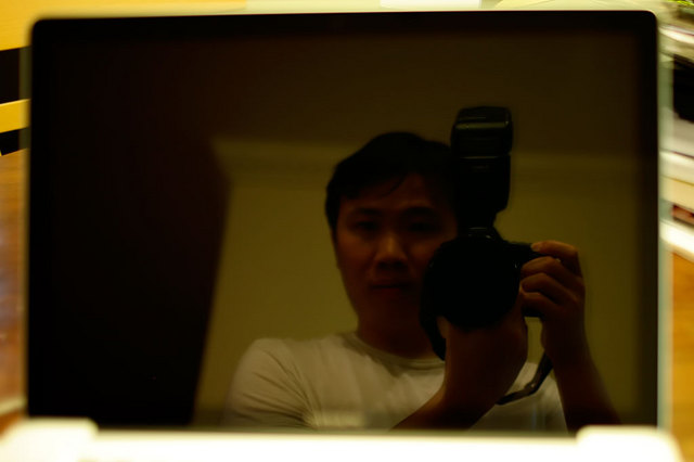 When the machine is on however, it's not an issue. Schiller wasn't kidding when he said the brightness of the screen would counteract the glossiness. To a certain point though. If you're looking at the screen off center or if you have a bright light source behind you or to the side, you'll notice the reflection. You'll notice it more if your background is black. So overall, I don't have a problem with it. But I've never had a problem with glossy screens to begin with so YMMV. And I'm not the type to be using my laptop outdoors so no idea at this point how it fares outside on a sunny day.