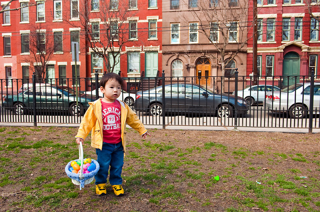 Actually it was the first Easter egg hunt for all three of us. Maybe not for me, but if I had went on any in my youth, I certainly don't remember them now. But kudos to the Hamilton Park Neighborhood Association for setting this up. Plus it turned out to be a gorgeous day weather-wise for such an outing.