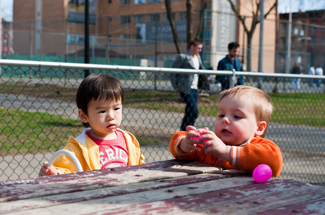 This past weekend we took Devon to his first Easter egg hunt at Hamilton Park. It was an interesting day for all of us as Erin and I discovered that we should not tell him beforehand what we would be doing later. Cause if it sounds exciting enough to him, he has no problems skipping his afternoon nap time in anticipation. And it's not like we upsold him on it or anything. I just casually mentioned that we'd go looking for eggs later.
