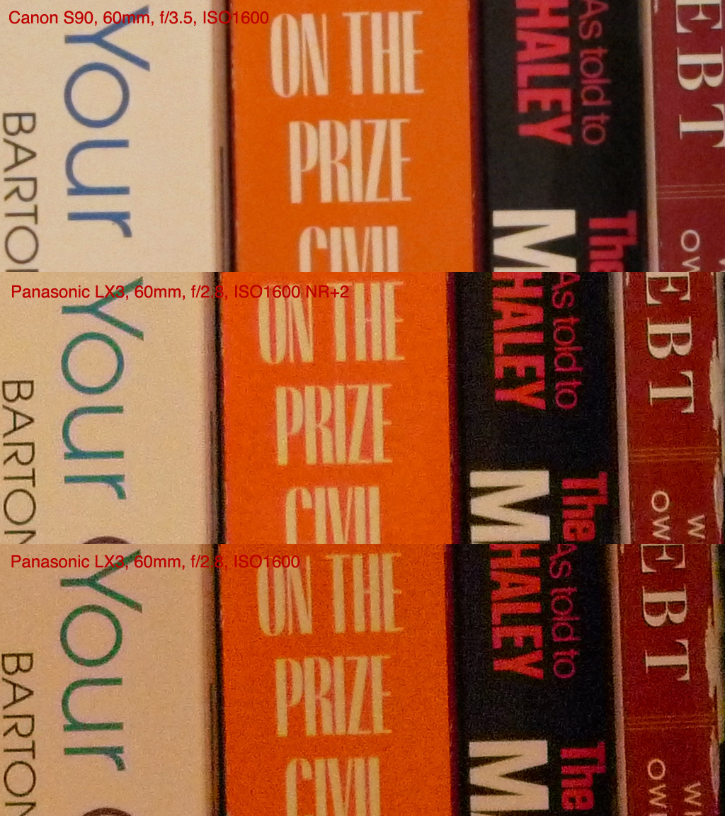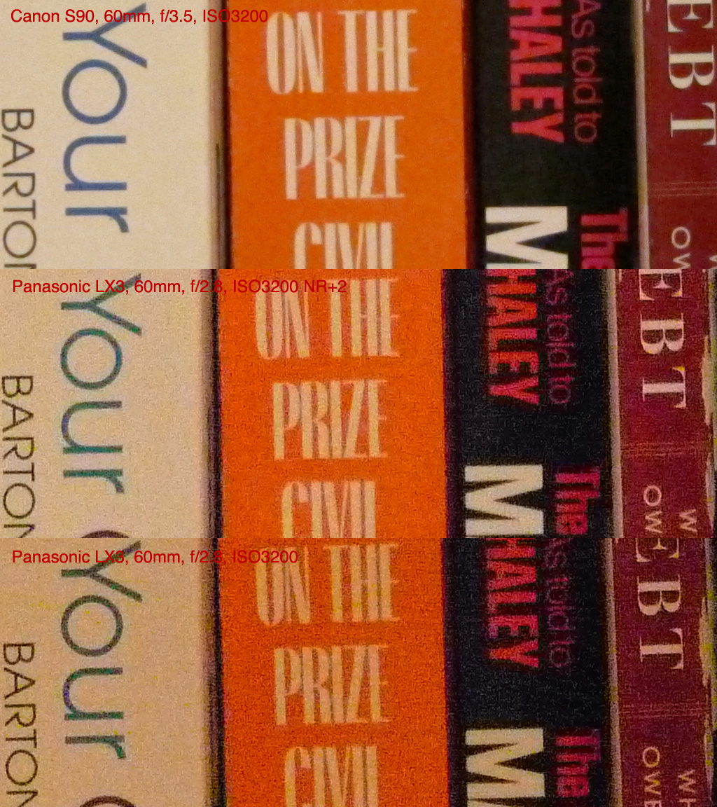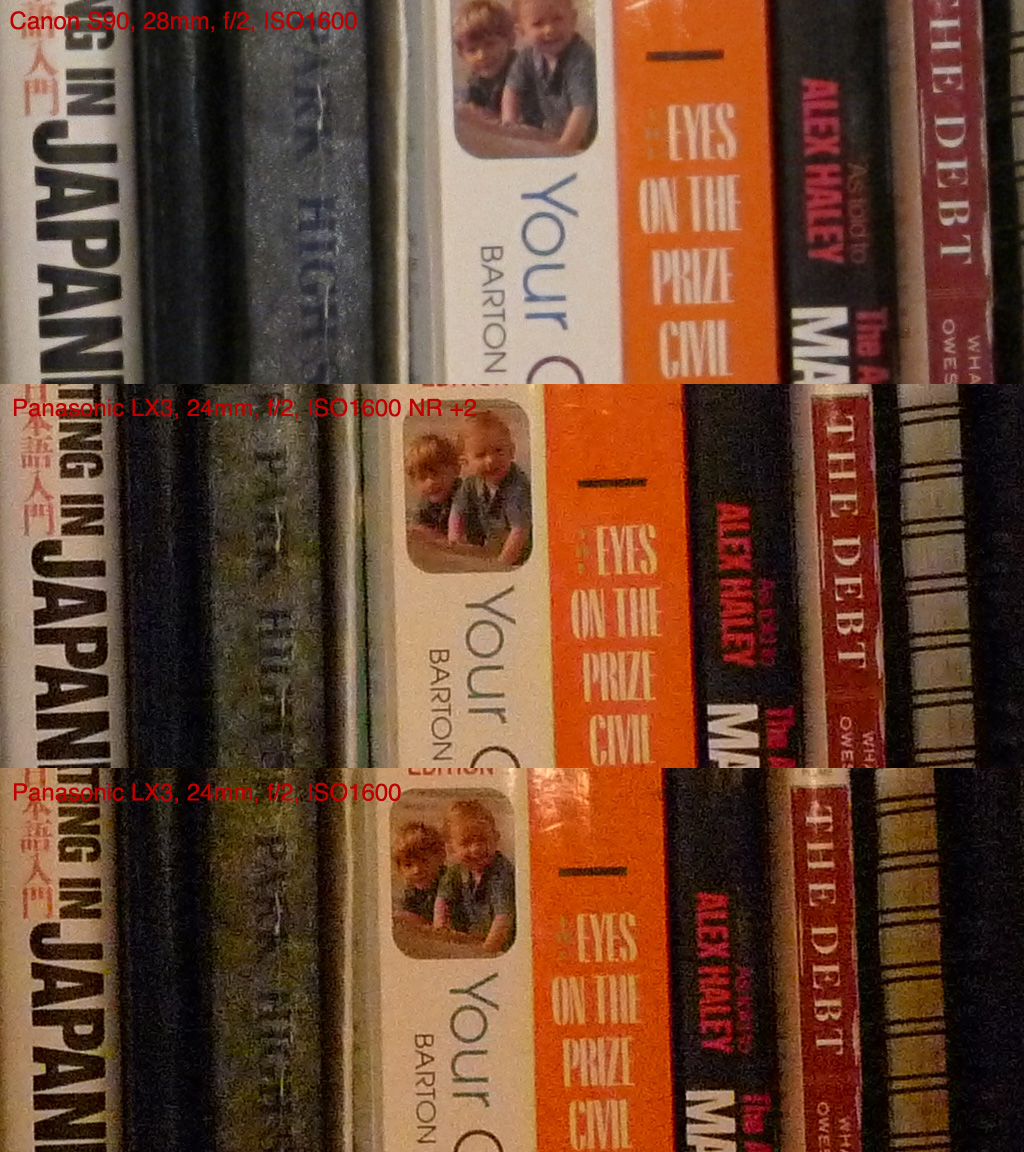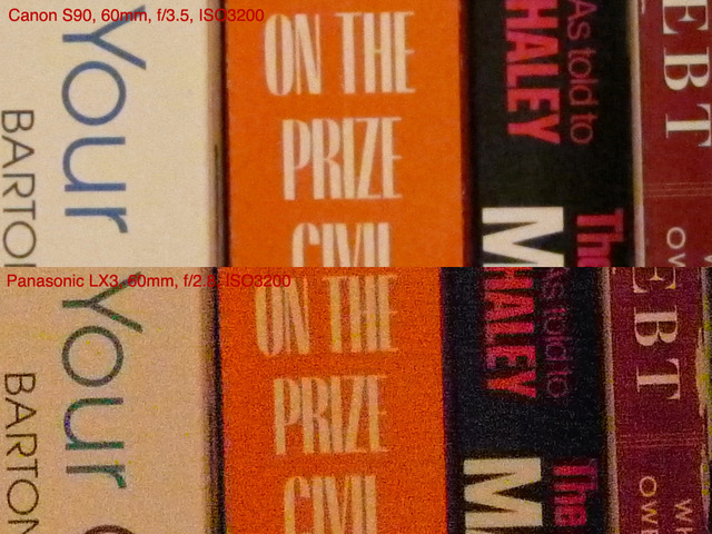 The LX3 can pull the NR trick to compensate for the noise, wondering if the S90 can pull the sharpness trick to compensate for the blurriness.