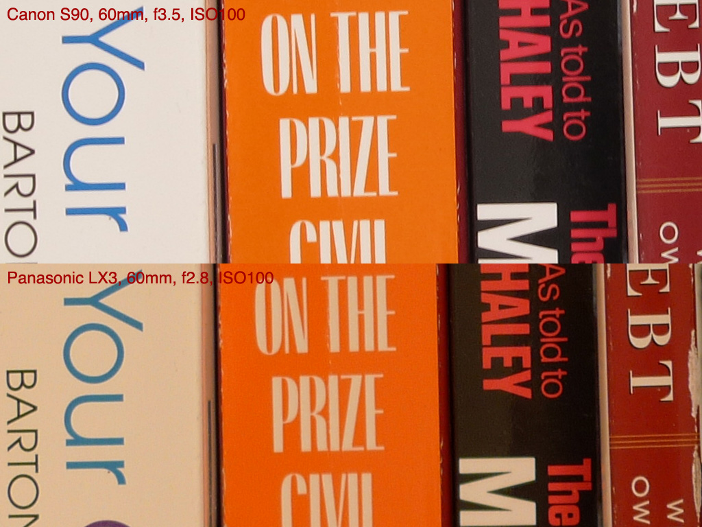So, first up is wide open (f/2.0) at the wide end (24mm for the LX3, 28mm for the S90), ISO 100.