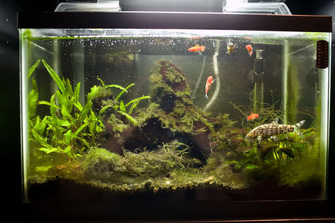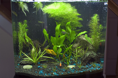 Having wasted like 2 hours trying to figure out how to put the stand together, I finally unboxed the tank itself and set it up on the stand. No big deal. Next came the arduous task of filling the tank to check for leaks. Considering that all I had was a light blue washbasin, this took awhile. But after all was said and done, the tank was finally up and running smoothly.