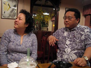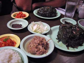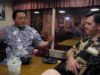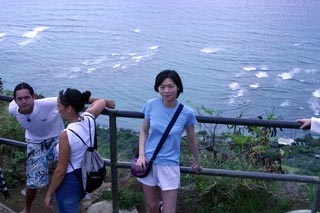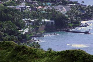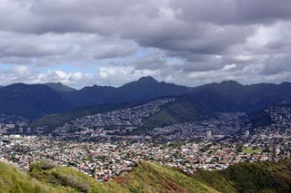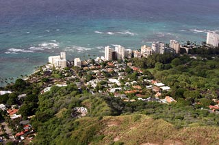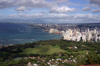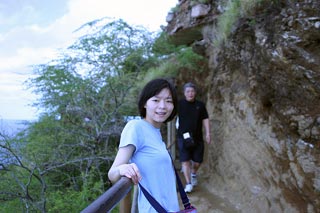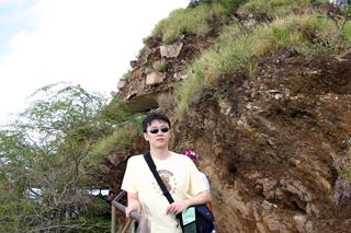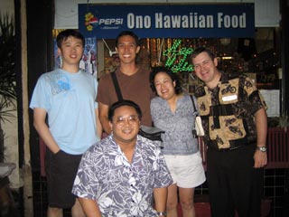 Got up bright and early Monday morning to make the trek up Diamond Head. Still made it there an hour after I originally planned. Is it at all possible to get someplace on time when there's a woman involved? ;-) But we still got there early enough so that there weren't too many people and the weather hadn't gotten too warm yet. The hike overall isn't too bad; hell, old people with walkers can be found on the paths and military folk and other in-shape people use it as a jogging path. The incline is mostly mild 'cept for some parts but definitely make sure you do this climb early in the morning otherwise it gets WAAAAAY hot or else you have to contend with mosquitoes at dusk. The view from the top is awesome though. For those who don't know, Diamond Head is basically an extinct volcano crater that the military built a lookout outpost on top of. It's one of three outposts located strategically around the island so that they could triangulate the big land-based guns they used to have to bombard enemy ships with. Not used for that purpose anymore so they've turned it into a tourist attraction. You no longer need to bring a flashlight with you on this hike as they've lighted all the inner passageways that used to require the flashlight. But good walking shoes and water are a must. Afterwards we drove all the way out west to the Ko'olina resort area, specifically Lagoon #2. They have 4 man-made crescent-shaped lagoons in the area that are supposed to be beautiful. However, winter is definitely NOT the time to visit the west shore of Oahu as it gets way too windy, leading to colder temperatures and higher waves. Even though the sheltered waters of the lagoons aren't affected so much by the high waves (stay clear of the openings leading out to the ocean though), it was still waaaaay too cold to stay out there for long periods of time. So we just took a quick dip, had a bunch of sand blown into our faces and all over our stuff and promptly headed back to Honolulu. We'll come back in the spring/summer next time hopefully. Made it back to Honolulu in time to barely miss rush hour traffic. Had some time to clean up and relax a bit before meeting up with Kim, Rob, Jeff and Kyle for dinner at a local Hawaiian eatery, Ono's. First time I've seen those guys in 7 years. They haven't changed a bit. =) Ono's was quite good too. Big portions and cheap as well. Kailua pork was great! Still can't get used to poi though. ;-) |