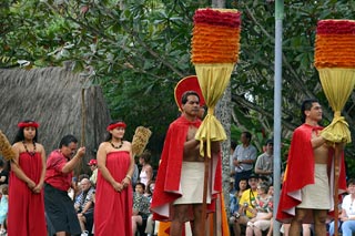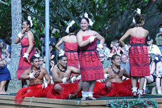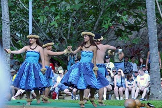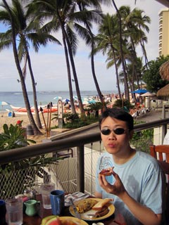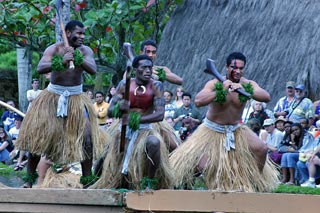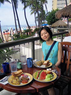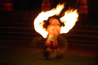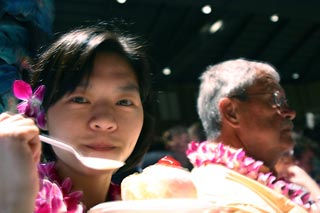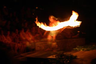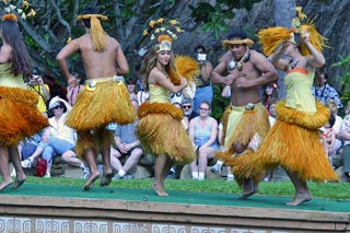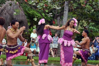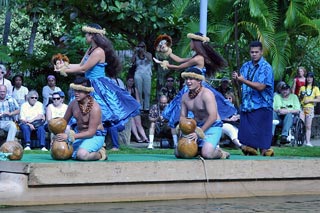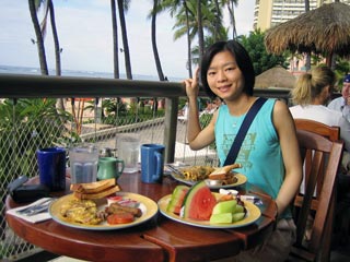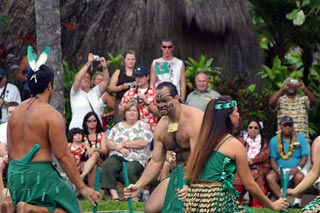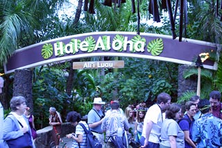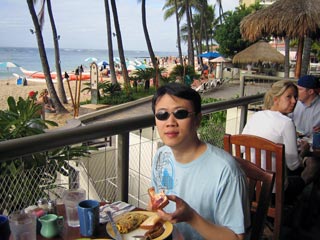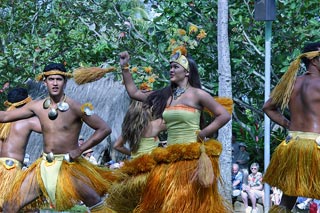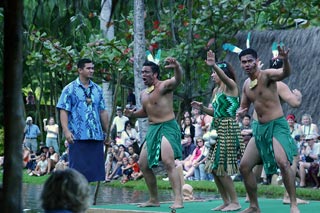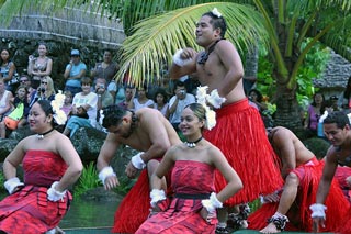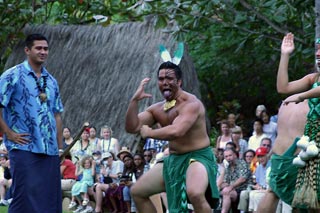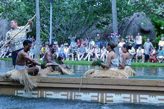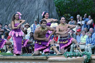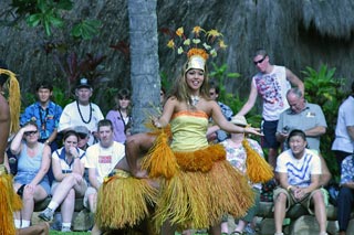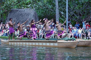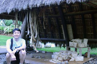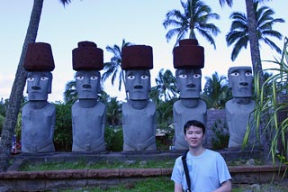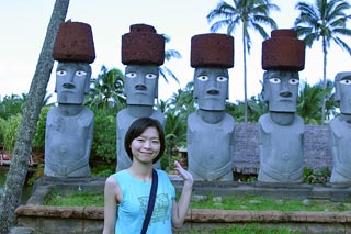 Today was devoted solely to spending time at the Polynesian Cultural Center located in north Oahu. I figured I'd kill two birds with one stone and buy the Hawaiian Alii Luau package which included entry to the park, their evening luau, and their Horizons evening show. The buy-one-get-one free coupon in our Hawaii entertainment book certainly came in handy. Since we weren't in a rush this morning, we headed over to Duke's Canoe Club for their breakfast buffet. At an affordable $10/person, their breakfast buffet offerings are well worth the price. Plus you can't beat the location: right on Waikiki Beach. Afterwards we strolled back to our hotel to pick up our car before taking the Likelike Highway to the north side. It's a nice scenic drive out to PCC although a bit longer than I had expected. About an hour+ or so each way. So going there wasn't a problem but driving back was a bit unsteady cause you're stuffed with food, tired from all the walking and driving down a dimly-lit two-lane road for the most part. It's been a while since the last time I was here so I made the same mistake as I did the last time I came with my parents. We decided to walk all the way to the farthest edge of the park and work our way back. Well, in this case we actually took their canoe ride to the farthest edge of the park first. After that their Rainbows of Paradise canoe show was starting so we hung out for that. By the time we made our way three-quarters of the way back, it was already time to head over to the luau area so we missed the Samoa shows! Which are the best ones out of the bunch! Grrr... at first we were gonna come back again in a day or two (their tickets are valid for 3 days from purchase) but never actually got around to it. Anyway, the shows they have for each island is entertaining for the most part but they always require audience participation. Which is ok if it incorporates a good chunk of the audience. I'm not fond of the ones where they pick people mostly because I'm afraid of being picked. =) But I enjoy the shows after that particular part is over with. And since they seem to get a lot of Japanese tour groups there, invariably they always have to choose at least one Japanese person which tends to be alot of fun. Language barrier and all. As for the luau, it's basically dinner with live entertainment. And probably best if you go with a group. Otherwise you get stuck at a table with people you don't know and unless they're all socially aggressive, don't really care about getting to know you. But we had fun and the food was good and plentiful. Love kailua pork! =) However, the food was pretty much the same as what we just had the evening before at Ono's. So if you just wanted to try the food, just go to Ono's and pay $12 instead of a luau where you'll spend upwards of $100. After dinner, everyone ambled over to the big open-air theater (hitting the numerous gift stores and kiosks along the way) to await the big show - Horizons: Where the Sea Meets the Sky. Big, colorful production where every Polynesian nation represented at the PCC does a native dance number. Very entertaining overall, highlighted by the Samoan fire knife dance. Besides that the Tongan drums and Tahitian hula were also fantastic. Very hypnotic, that hula. So that was day 4. By the time we got back to our hotel we were beat. And with another full day ahead of us, we just went right to bed. |