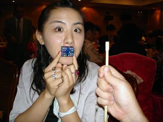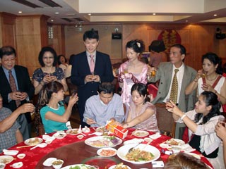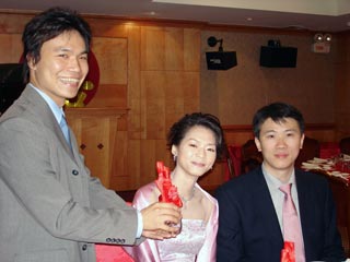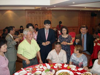 These pics were taken the day after the dinner reception at the lunch reception that Erin's folks threw for their relatives. Quite yummy seafood cuisine at the "Under Ocean Skies" restaurant. They also had kroaky facilities which were actually used by Erin's father, aunt, and cousin Sally. They're definitely a lot less inhibited than my family. =)