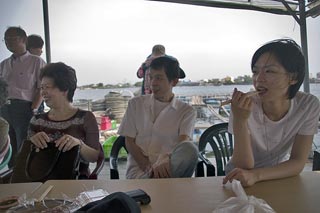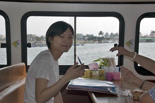 After lunch the restaurant owner (quite a gregarious guy) convinced us to try out the new boat rides available nearby. Takes a trip around the Da Pung Wan area. Relatively new boats but not really all that much to see. Hence the kroaking available onboard. I guess the biggest attraction is the giant "airplane" type thing located on the shore which apparently is from Holland. Not sure exactly what the heck it is but people do seem to visit it. The boat then stopped on a "reef" nearby that had an eatery which seemed to do rather brisk business since every boat operator in that area stopped there. Anyway, was a relaxing trip nonetheless.