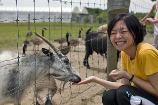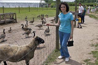 Terhune also had a small petting zoo of sorts. There were a donkey, goat, a few sheep, and a whole gaggle of Canadian geese that I'm assuming were not originally part of the plan. Supposedly there's a pony too but we didn't see him that day. Anyway, for 15 cents you could get some feed for the animals which Erin enjoyed immensely. Never realized goats eyes were so evil-looking. =)