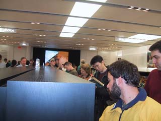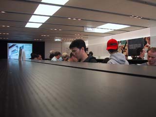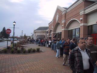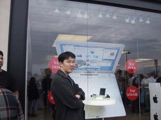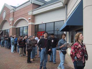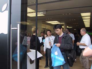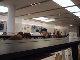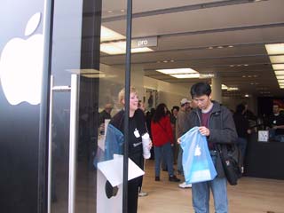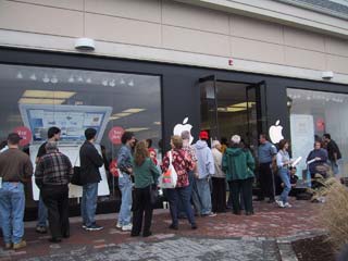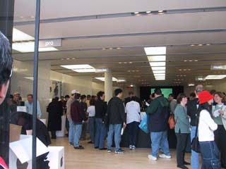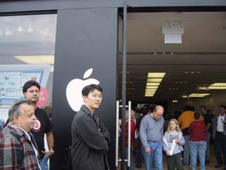 They finally opened an Apple Store in the tri-state area (Tice's Corner, Bergen County, NJ, just off the Garden State Parkway) so who was I to resist the temptation of going to see it on opening day? I guess the free t-shirt for the first 1000 visitors offer helped a little bit too. =) Very nice store, they should do well. Erin, who's not an Apple fan, got dragged along anyway so she decided to spend the time taking pictures. We got there about 10 minutes before opening time and didn't step foot into the store till about an hour later.