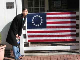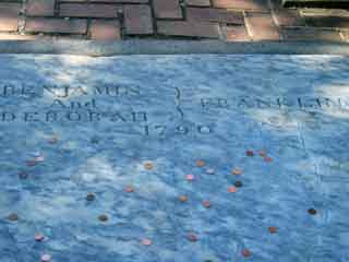 Stopped by Ben Franklin's grave. People leave penny's on it in remembrance of his "A penny saved is a penny earned" saying. I like his other saying better, "Three men can keep a secret as long as two of them are dead." Also took a tour of Betsy Ross' home. They sure made them small back then.