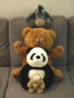 For once I had a relatively busy weekend. On Saturday, I took Erin down to Gund headquarters in Edison where they were having their quarterly "Get Rid of Inventory" sale. Was notified of it by a coworker and thought it'd be a good idea to drop by to see how things were. Basically they set up a tent next to their shipping department with big cardboard boxes stuffed with animals. When you walk in, the person at the door hands you a huge, transparent garbage bag. And people actually fill those things up. Freakin' incredible. And most of the items are about 50% off so pretty good deals. Both Erin and I wound up spending just $19 each. Erin bought some small Winnie the Pooh animals, hoping to sell them off to some gullible friends in Taiwan for a 200% markup. ;-p Me, well, just look below: Afterwards we headed up to my parents' place to show off our spoils and to see how the home renovations were coming along. They were still in the process of tearing out the kitchen and only 1 out of the 2 and 1/2 bathrooms that we have there was useable but when everything's done, it'll look pretty darn good. Although I think my dad's going a little nuts with the marble tiles. He's marble-izing anything that doesn't have carpet practically. Old linoleum floors? Marble. Counter tops? Marble. Garage? Marble. Just kidding on that last one. =) I'm afraid the house is going to come crashing down one day with all that marble. But whatever makes him happy I guess. =p And after they're done with all this, they're replacing the carpet too. Sheesh. On Sunday, I had the pleasure of going on a 7 hour munch fest with June, who was down for the weekend from Chicago. Joining us were some other fellow UofC alums: Diana, Felix & Suzanne, Andy & Anne. Starting from Fe & Suzanne's apartment, our first stop was Sushi A-Go-Go for lunch. Down near Lincoln Center, they apparently had excellent sake sangrias. And the sushi wasn't half bad either. Unfortunately, Andy & Anne didn't get their in time to eat but that wouldn't be much of a problem as you'll see later. Since we were in the area, Andy invited us up to see his workplace at ABC News. It's kinda cool cause he sits a bit behind and to the left of Peter Jenning's seat during the news broadcasts. And he has a flat panel display. And an Aeron chair, that bastard. ;-p Actually they had Aeron's all over the place. Anyway, we got to sit in Peter Jenning's seat and snap some pictures. And got a brief tour of the whole operation over there from the makeup room to the control room to the photo-editing rooms. Interesting to see. Afterwards, we decided to head down to the NYU area for the mandatory stop at St.'s Alp for some tea with tapioca. Apparently Anne's first trip to such a place and she was quite amazed at the tastiness of it all. Understandable of course. ;-) We hung out there for awhile waiting for Diana to give us a call since she had run off to her ballet lessons. 3 martial arts and now ballet, I think we should have a pool to see what she goes for next. Spelunking? Paragliding? Alligator wrestling? Lion training? Glass blowing? The possibilities are limitless. =) When she finally did call it was time to talk about well, dinner. Heh. So after deciding on the New Yorker residents' favorite Ethiopian place on the upper West side, we decided to reconvene at Fe & Suzanne's place again to freshen up before we went and stuffed ourselves some more. After the obligatory bathroom runs by everyone involved, we stepped back outside where we... promptly froze our butts off. Damn! it was cold that day. Sucks when the weather goes from 60 degrees to 20 overnight. Needless to say, waiting for the bus was not a fun event. But eventually we arrived at Ghion and settled down to some damn good finger food. Vegetarian though it may be, everything was quite good. Although apparently I disappointed Anne for not being a voracious pig. Where she got that impression from I'll never know. =p Anyways, it being a Sunday night and a freezing Sunday night at that, there wasn't much left to do afterwards 'cept for everyone to haul ass back to their respective homes and warm up. But overall it was nice seeing everyone again, especially that crazy Korean woman from the Midwest. ;-) Even if our main events for the entire day revolved around food. Guys, next time, let's do something else besides eat, yeah? And for heaven's sake remind me to never, _ever_ drive in to the city again unless you can guarantee that I can find street parking without a problem. Paying $43 for parking is just criminal. That's one less PS2 game that I'll have to wait another month or two to get. ;-p Monday was the 6 month anniversary of the Sept. 11 affair and the day culminated with the memorial of light that is set up a bit north of where the WTC used to be. It was still way too cold Monday night to go check out the lights but Tuesday warmed up a bit so we headed down to Exchange Place then. With each square beam of light consisting of 48 searchlights, it's definitely pretty impressive and the beam really gets up into the clouds. Unfortunately it doesn't turn out very well in pictures. If you're in the tri-state area, it's definitely worth checking out one evening before they shut it down for good in April. | |