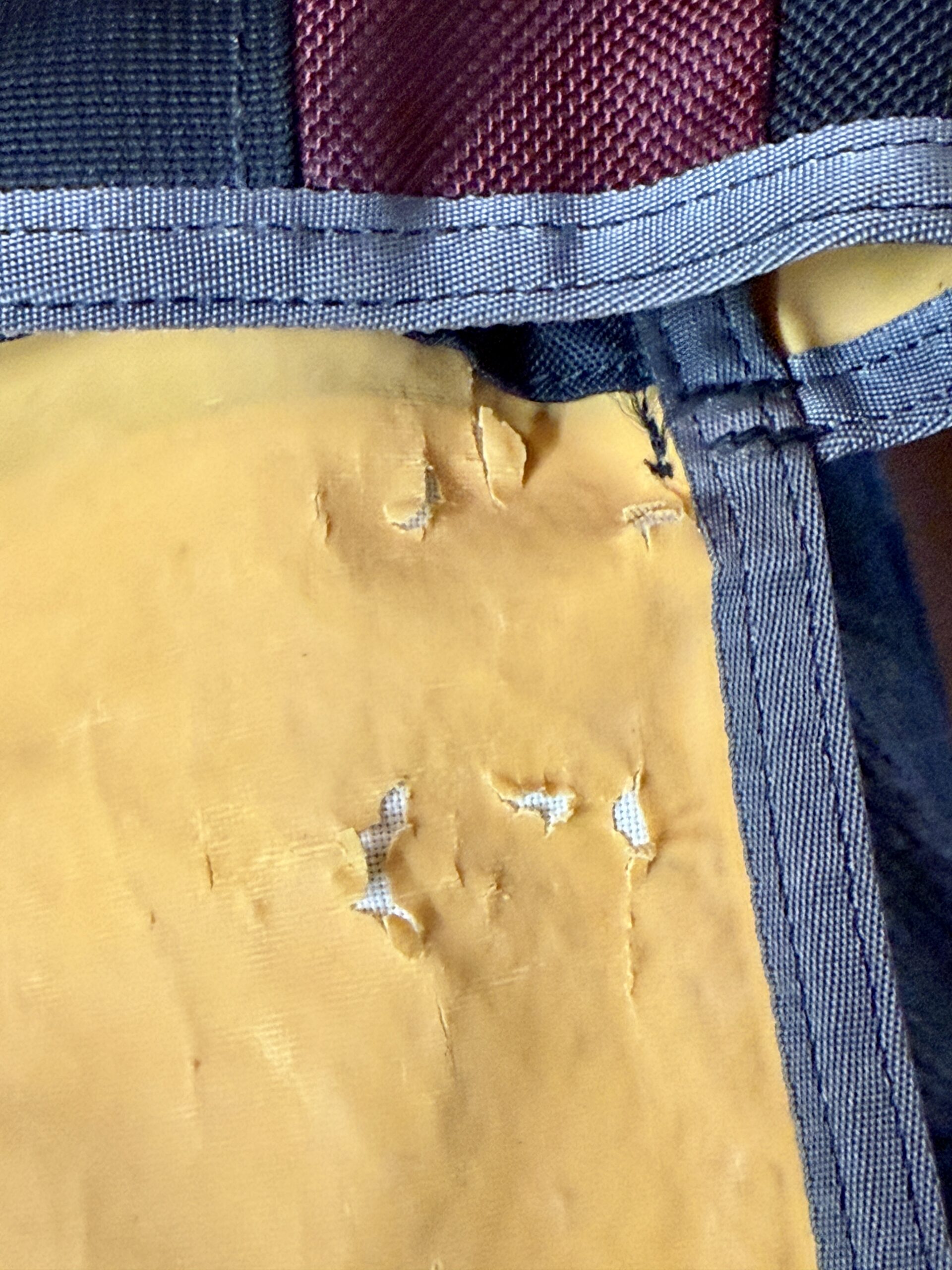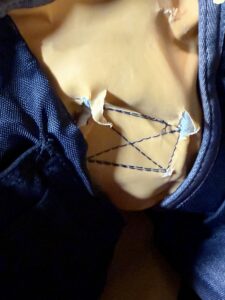 Also some threads on the center panel fabric that rubbed the most against my body was starting to loosen and unravel.